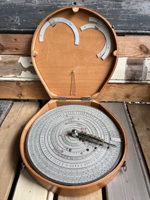 This beautiful round slide rule is as good as they ever were. It functions like a slide rule but it is build like a machine. I can see a persons having a job in a cement factory that used this on a da...