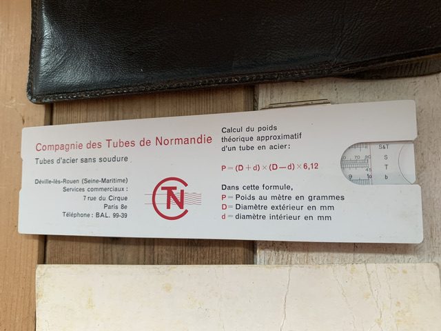 This slide rule has been specially constructed for CTN, the Compagnie des Tubes de Normandie by Graphoplex. It has the French language on the back as well as an additional instruction card in French also. Â The front has scales for standard calculating as well as several additional scales for calculating metal tube constructions. On the back of the slider there are additional scales as well. It is branded CTN on the back of the slide rules and also comes in the original CTN signed leather sleeve. The interesting dedicated curser, rule and sleeve are complete and in very good condition. with minimal signs of use and age. It measures ca 15 cm or 6 inches. Do check the attached video on how to work your vintage man tool : slide rule operation instructions!